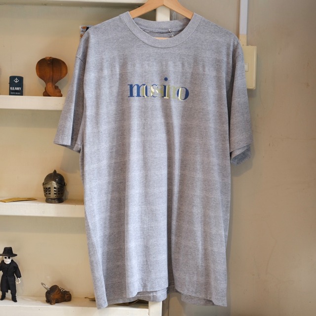 サーフ発、ストリートブランドMossimo 90年代は比較的ポップなデザインも多いですが、比較的落ち着きのあるロゴTシャツ。 ピンストライプの太ボーダーが薄く入っていて絶妙です。 重なったロゴのカラーリングが尚良し。 -------------------- Size - XL程度 肩幅-52cm 身幅-57cm 着丈-75cm Condition - A --------------------