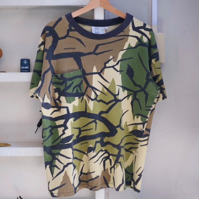 変わり種カモフラージュの定番(矛盾)、プレデターカモ。 説明不要。無い訳ではないですが、半袖は珍しい気がします。 リペア跡、小穴等の状態考慮でプライス抑えめです〜 -------------------- Size - L程度 肩幅-54cm 身幅-55cm 着丈-66cm Condition - C --------------------