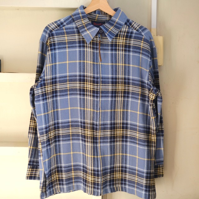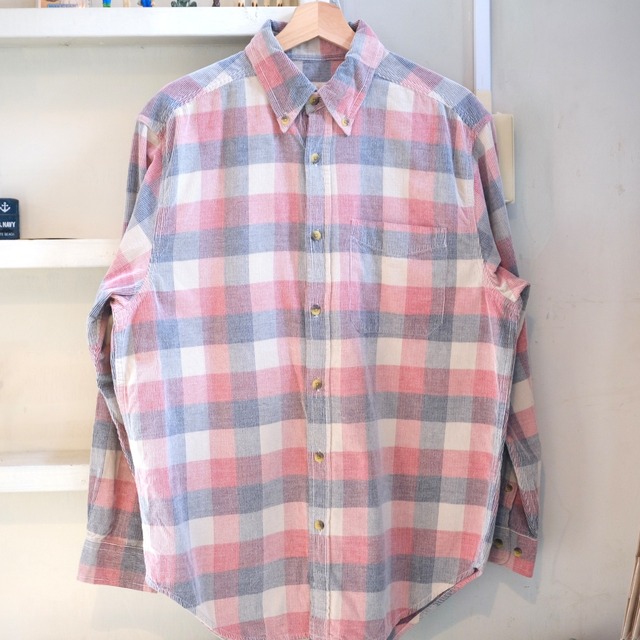 グッドチェックパターン! 白ベースの洒落たチェック、あまりにも爽やか。 パープルラインが特に良い。 個人的にもかなり推している一枚です。 -------------------- Size - L 肩幅-54cm 身幅-66cm 着丈-79cm Condition - A --------------------