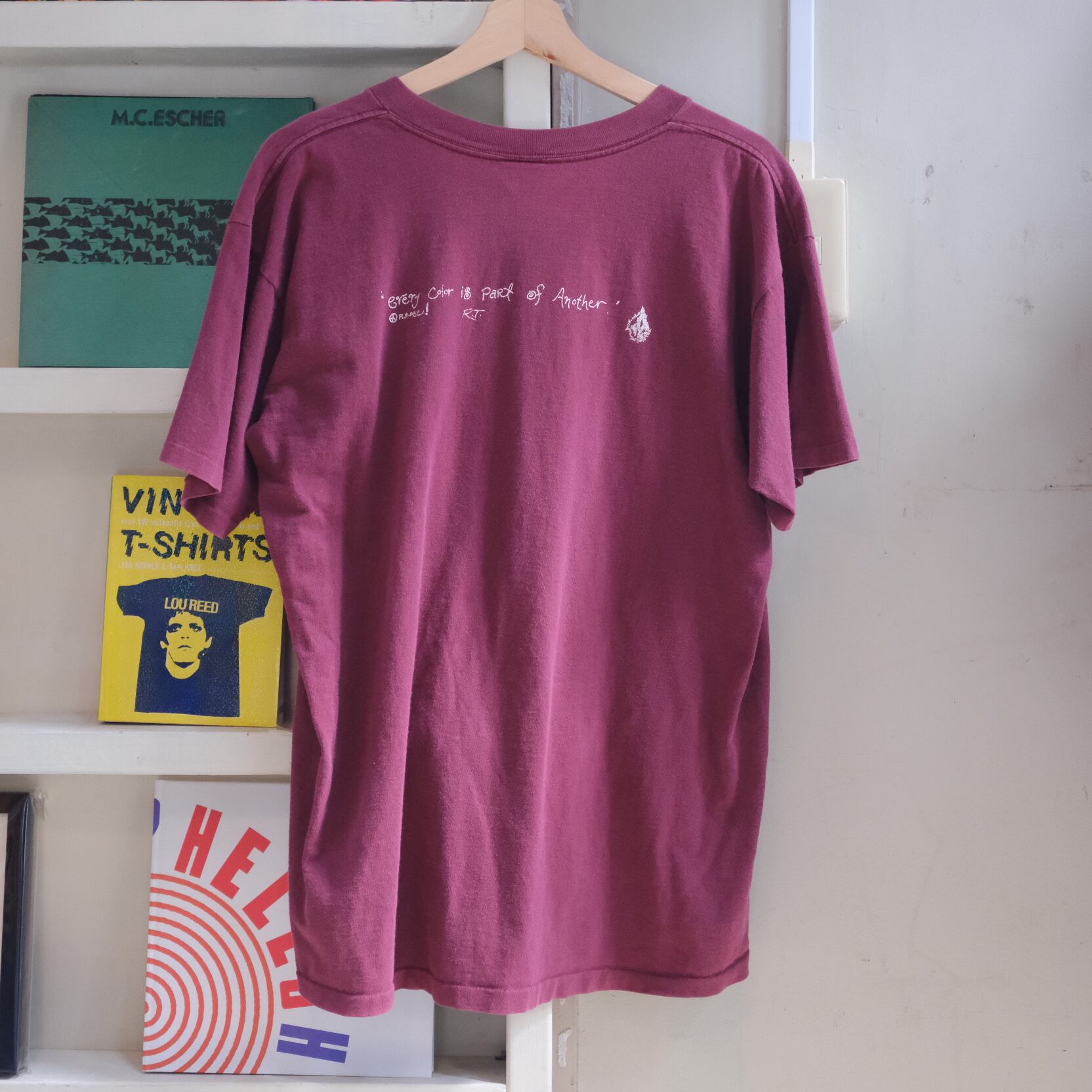 インパクトある厚めのフロントプリントに、バックには "every color is part of another" とピースフル且つメッセージ性のあるプリント。