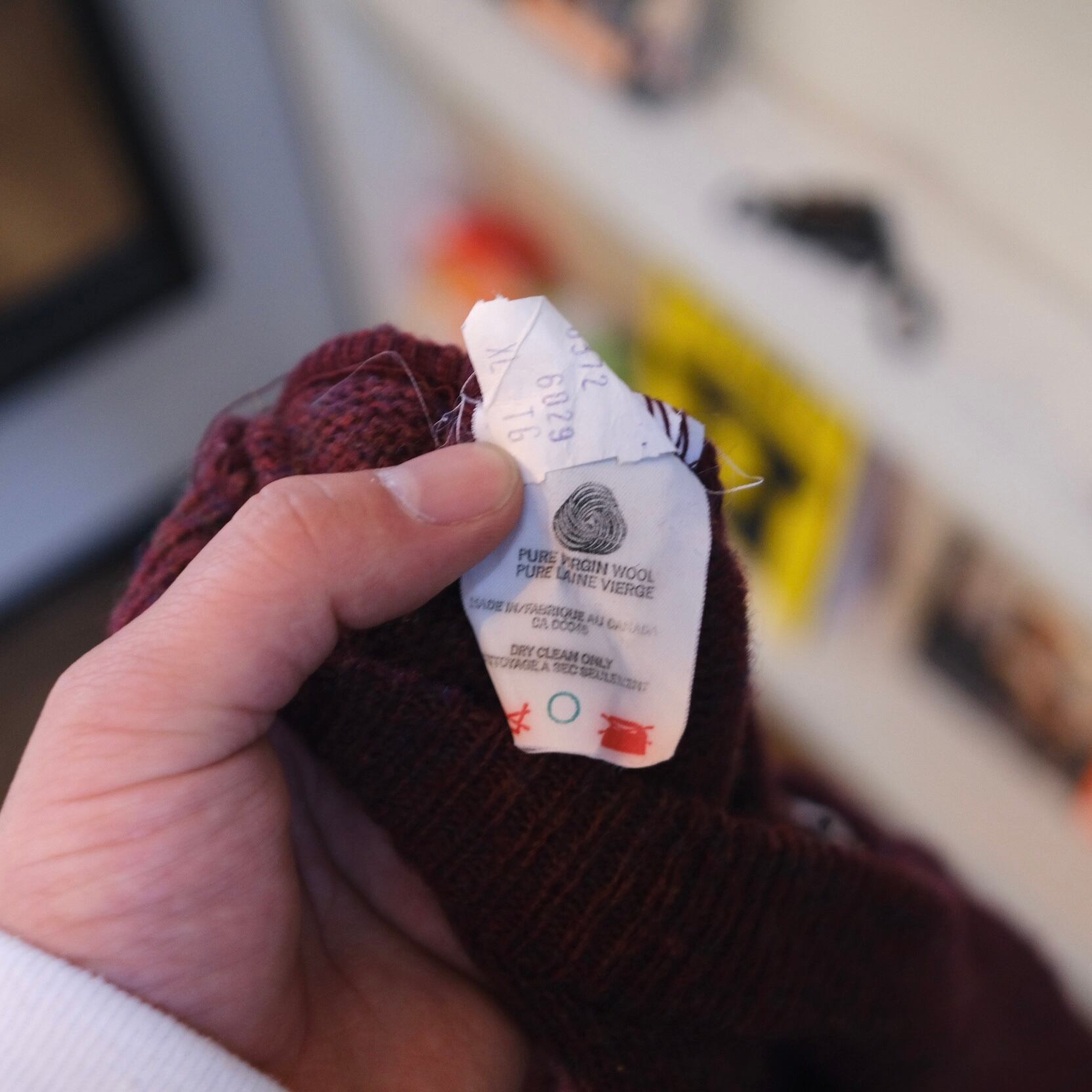 こちらも続いてミックスカラーのニット。バーガンディベースに何色使われているんでしょうか、パッと見5色くらい使われてる様に見えます。